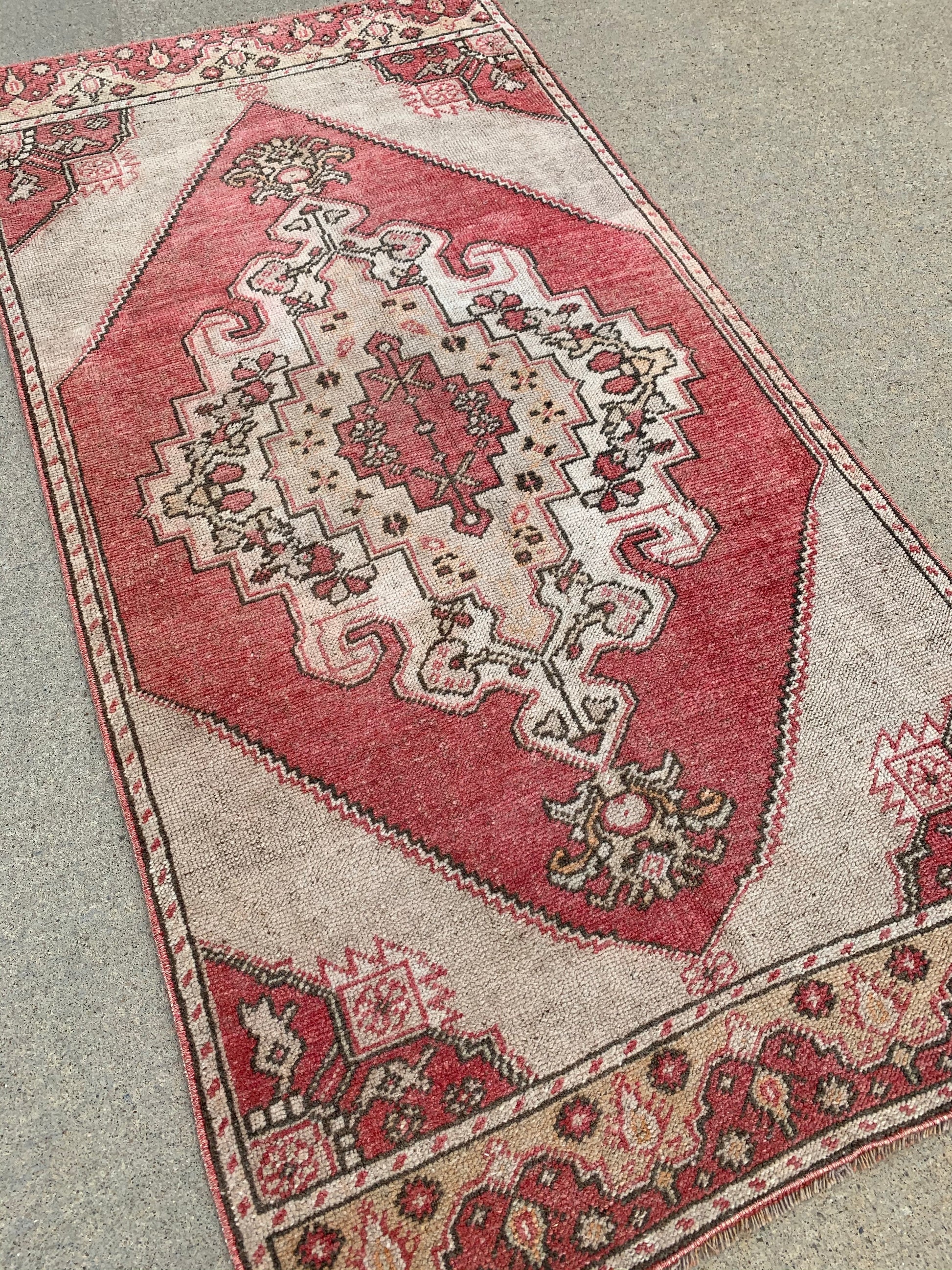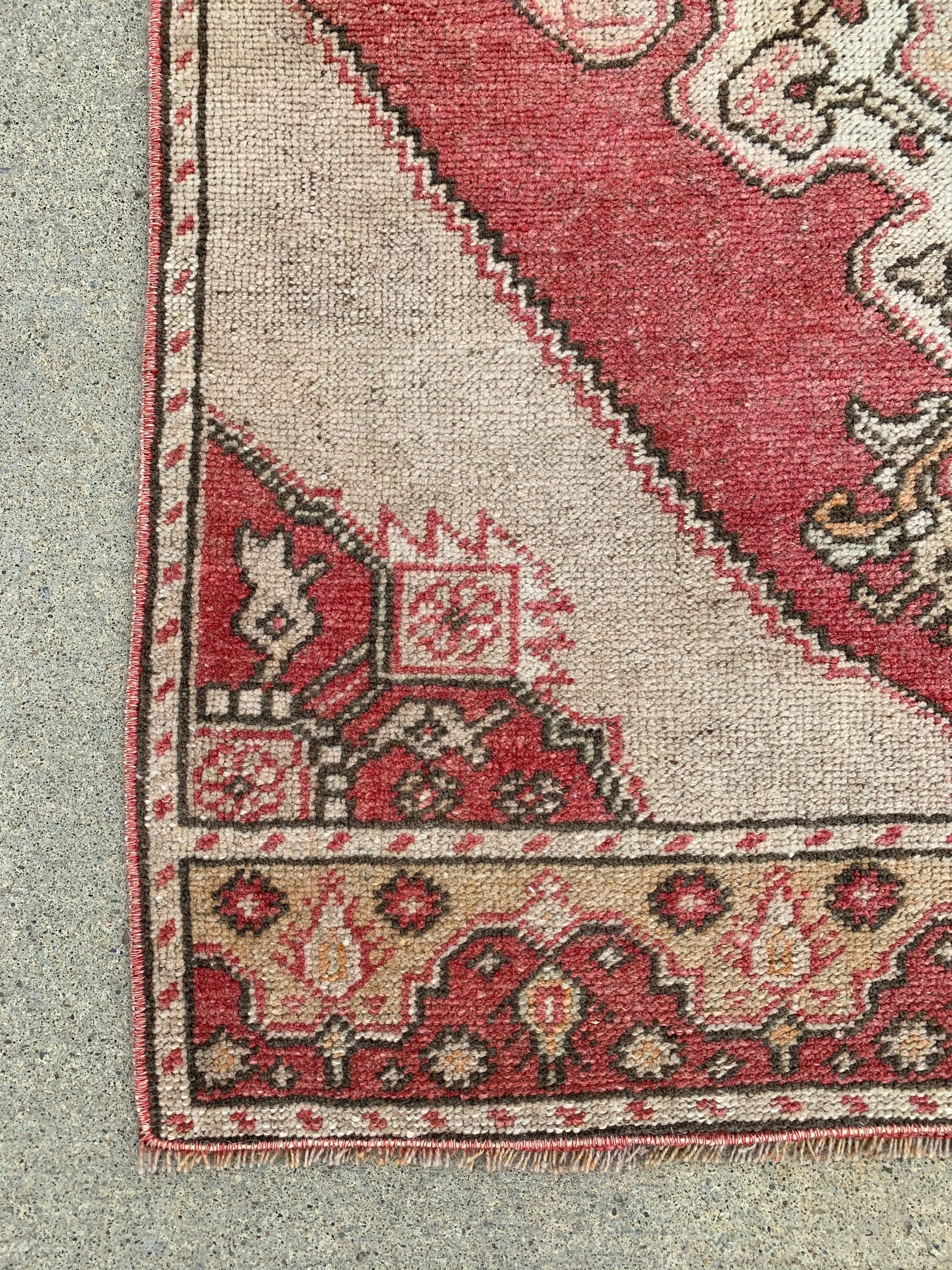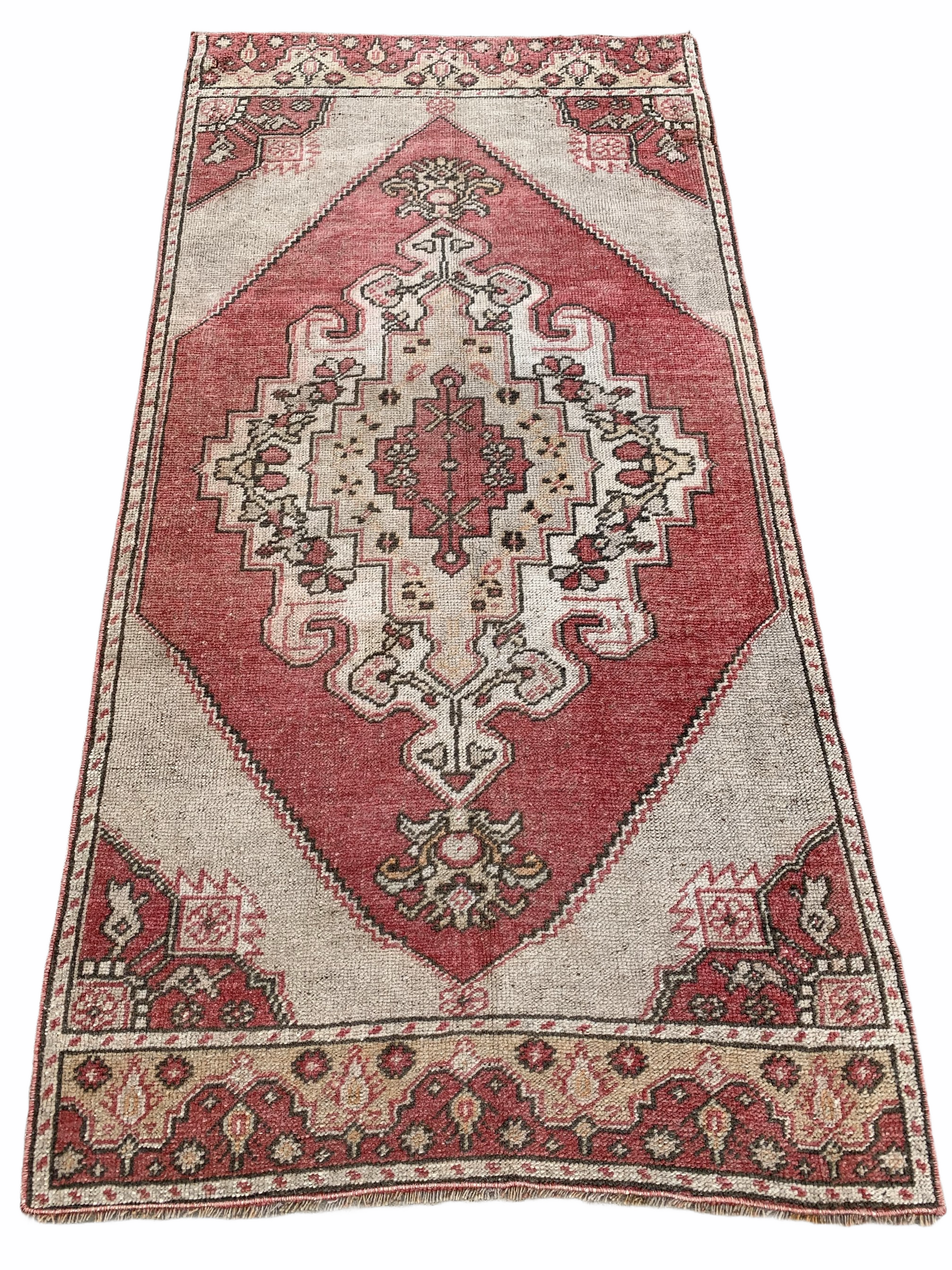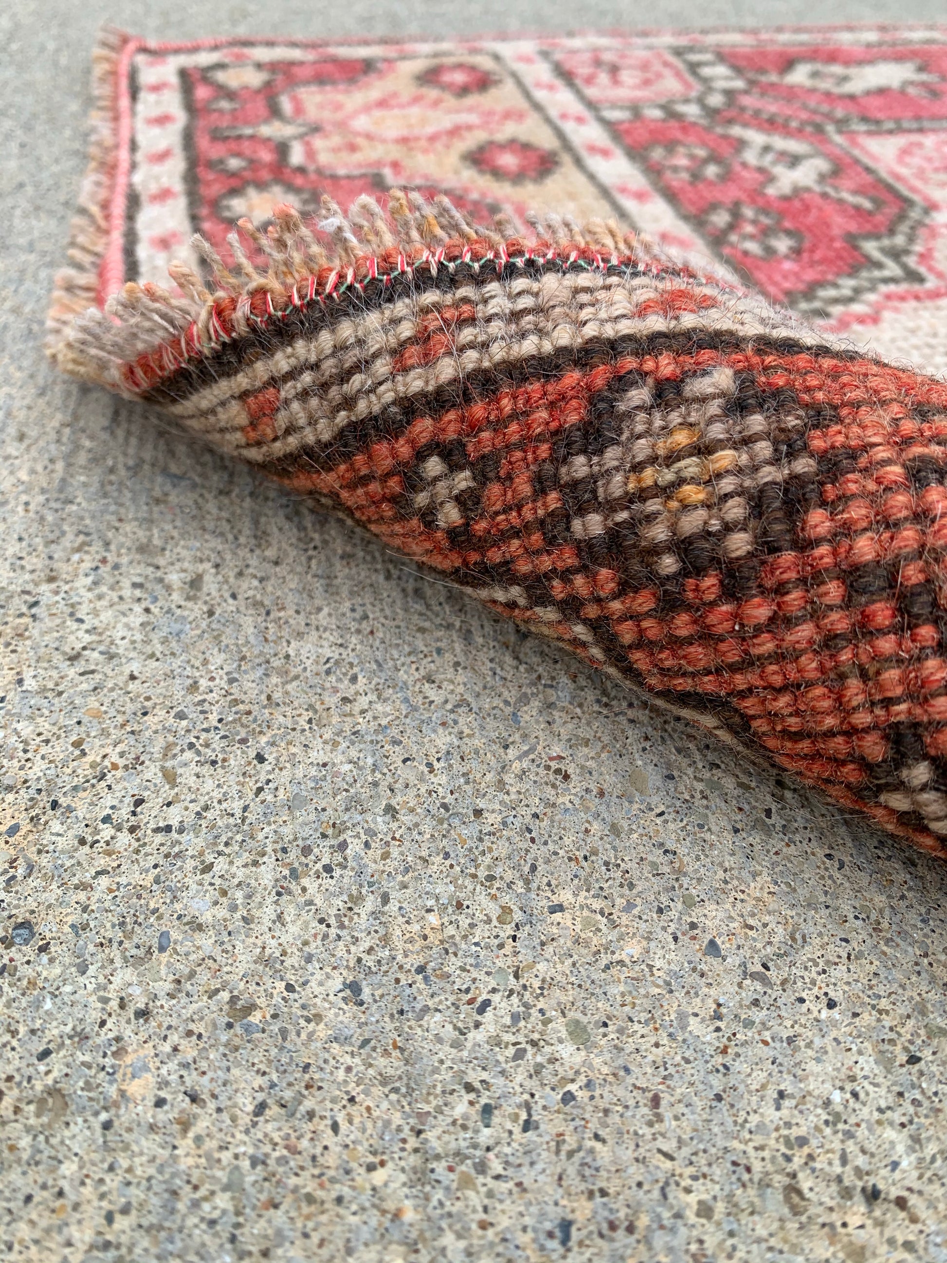 All rugs have been thoroughly cleaned; age-related wear and patina are considered normal in these unique, hand woven vintage rugs. All pieces have been photographed with moderate natural light. Colors may vary depending on your phone or screen settings. Some items may not be perfectly straight or rectangle. We consider these characteristics part of what makes them truly one-of-a-kind.
