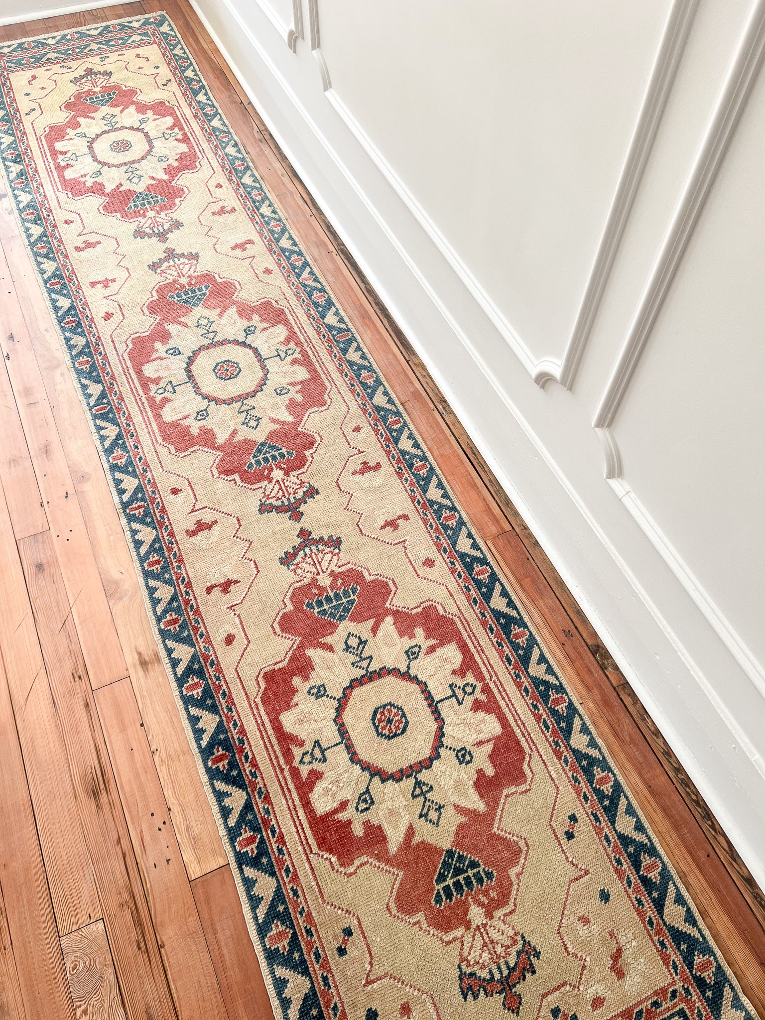 All rugs have been thoroughly cleaned; age-related wear and patina are considered normal in these unique, hand-woven vintage rugs.