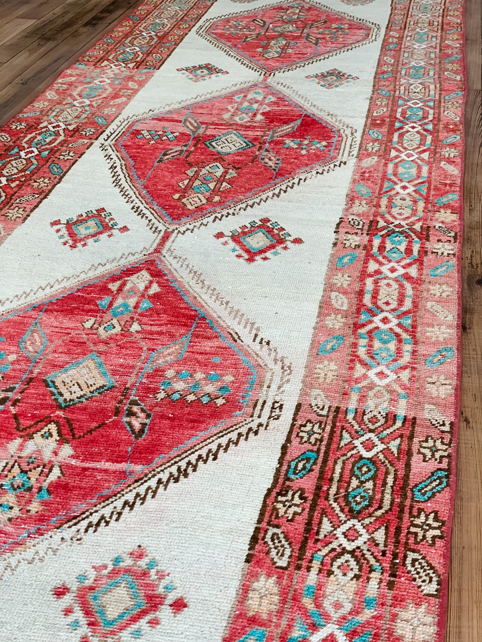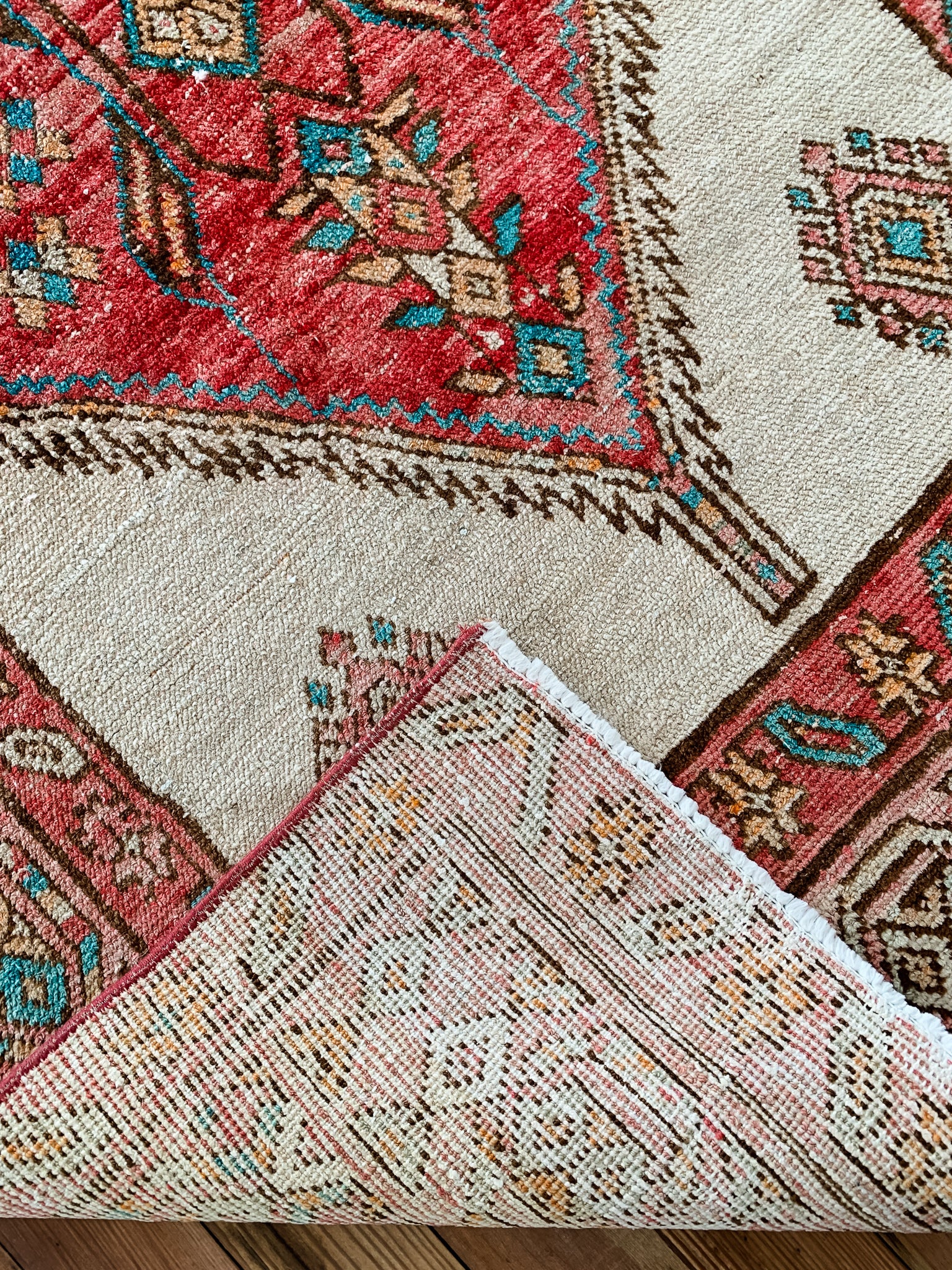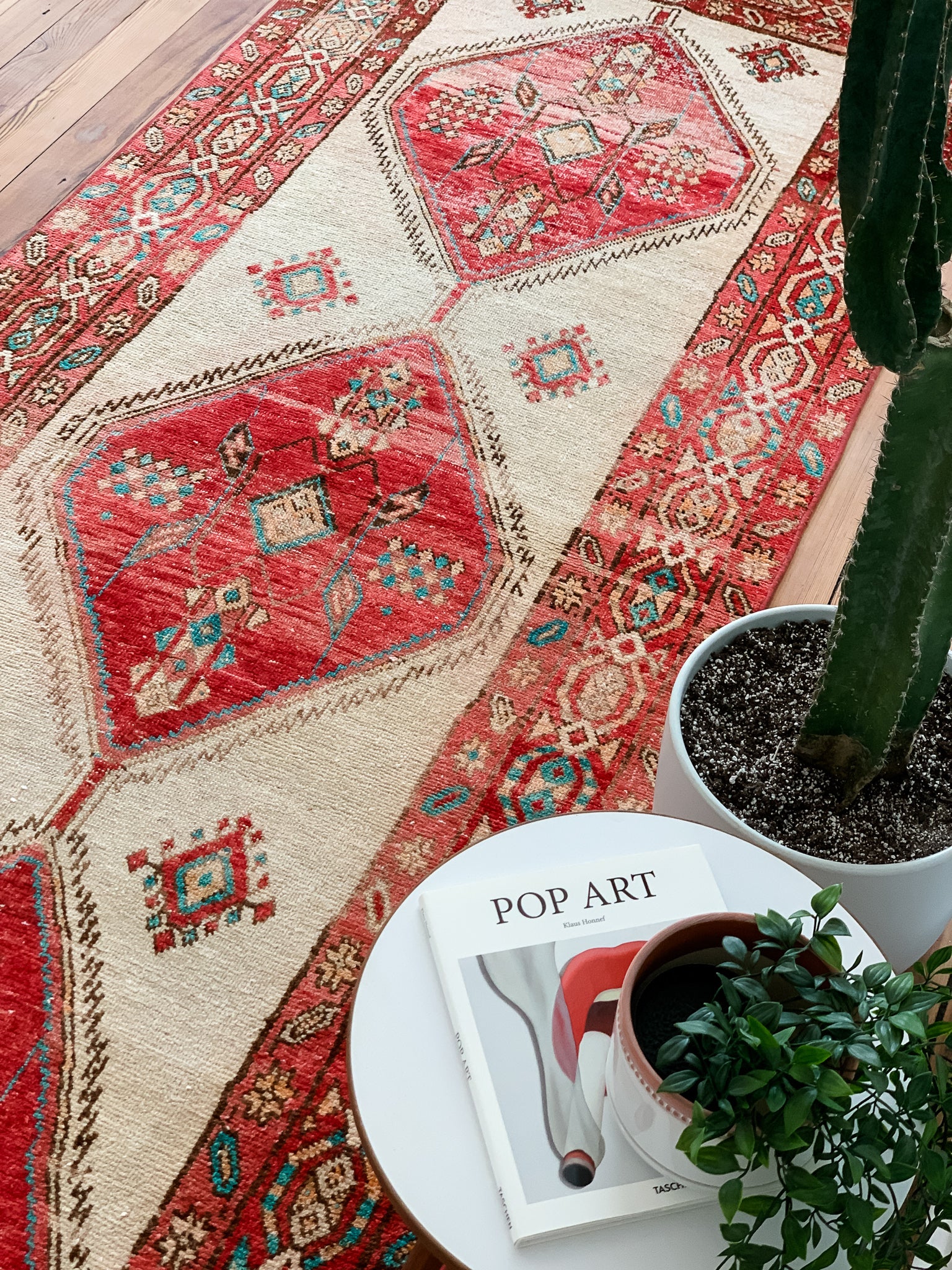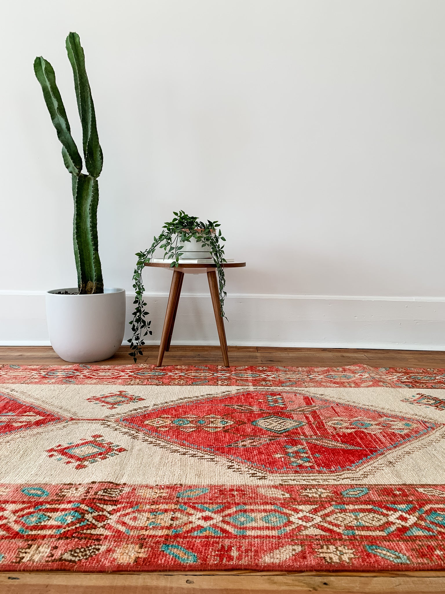 All rugs have been thoroughly cleaned; age-related wear and patina are considered normal in these unique, hand woven vintage rugs. All pieces have been photographed with moderate natural light. In some cases, photos are edited to depict the most true to life colors. Colors may vary depending on your phone or screen settings. Some items may not be perfectly straight or rectangle. We consider these characteristics part of what makes them truly one-of-a-kind.