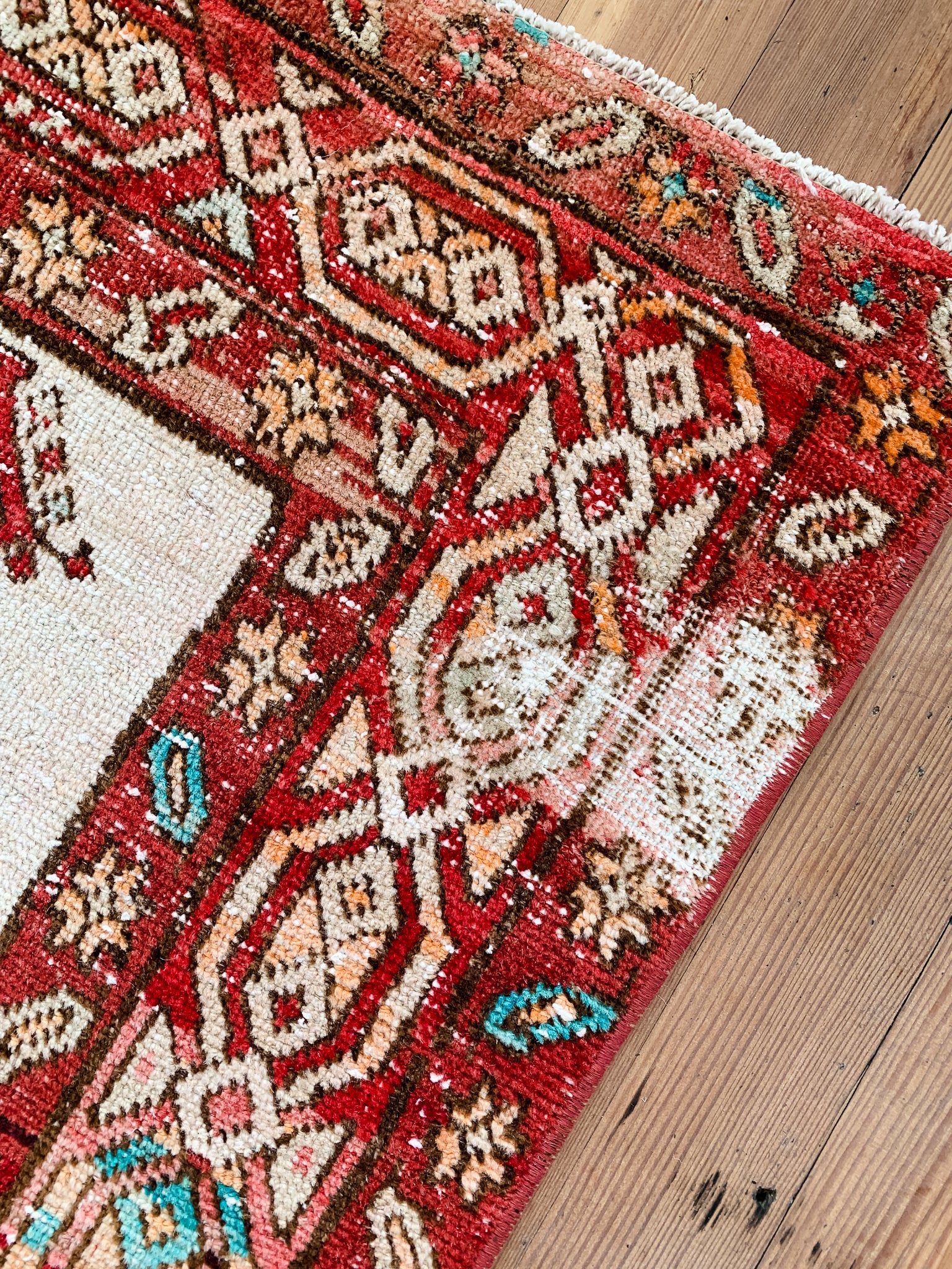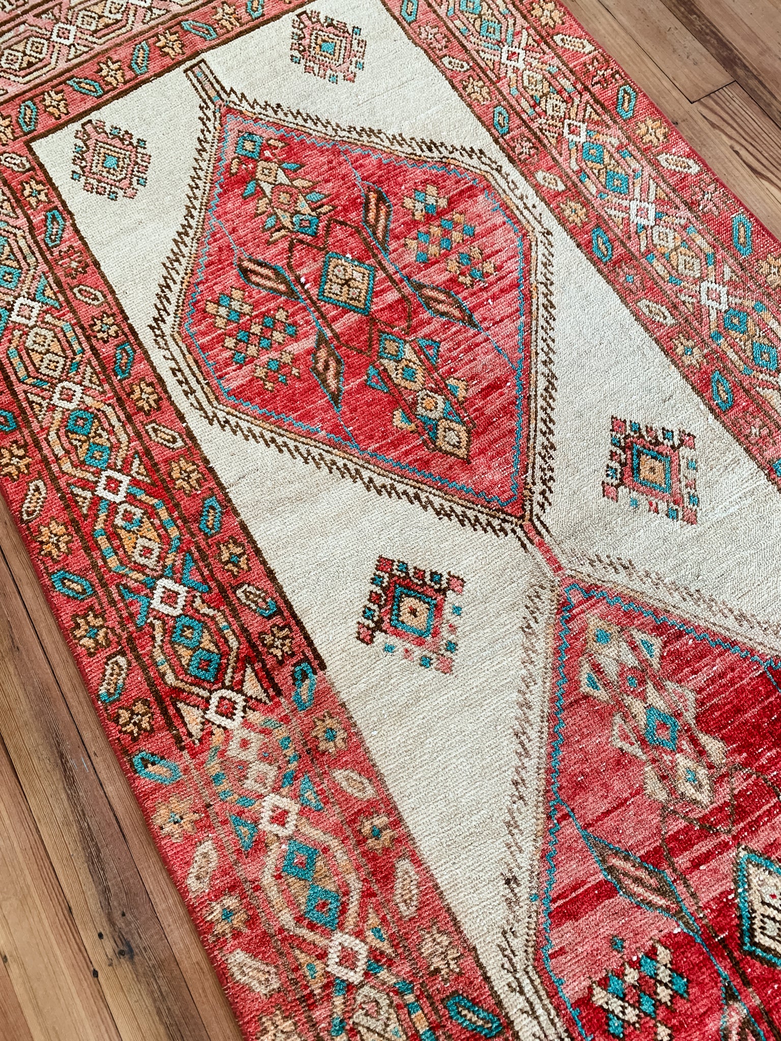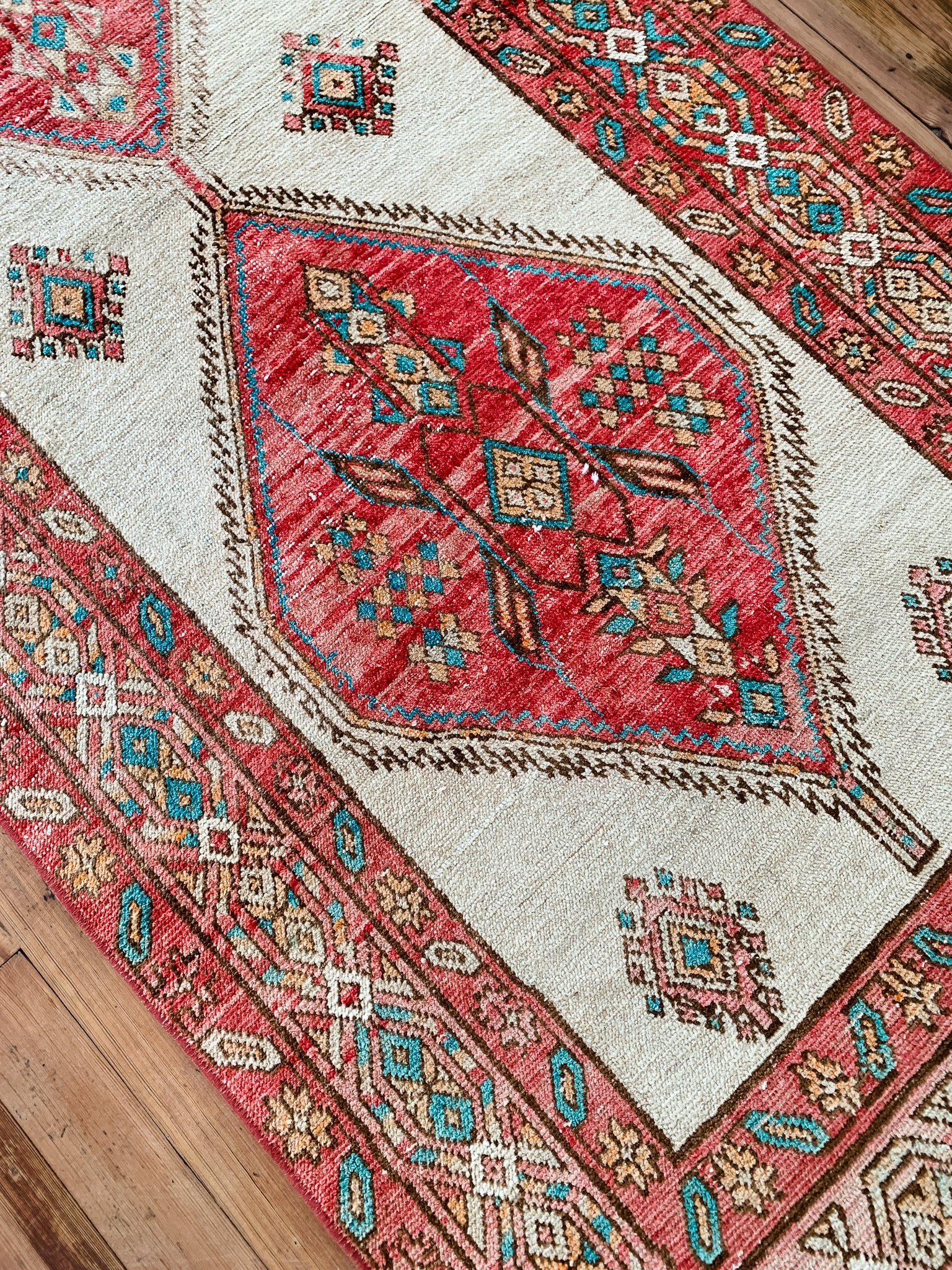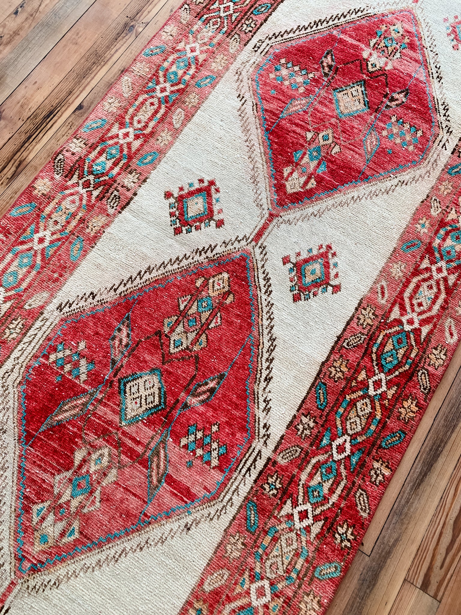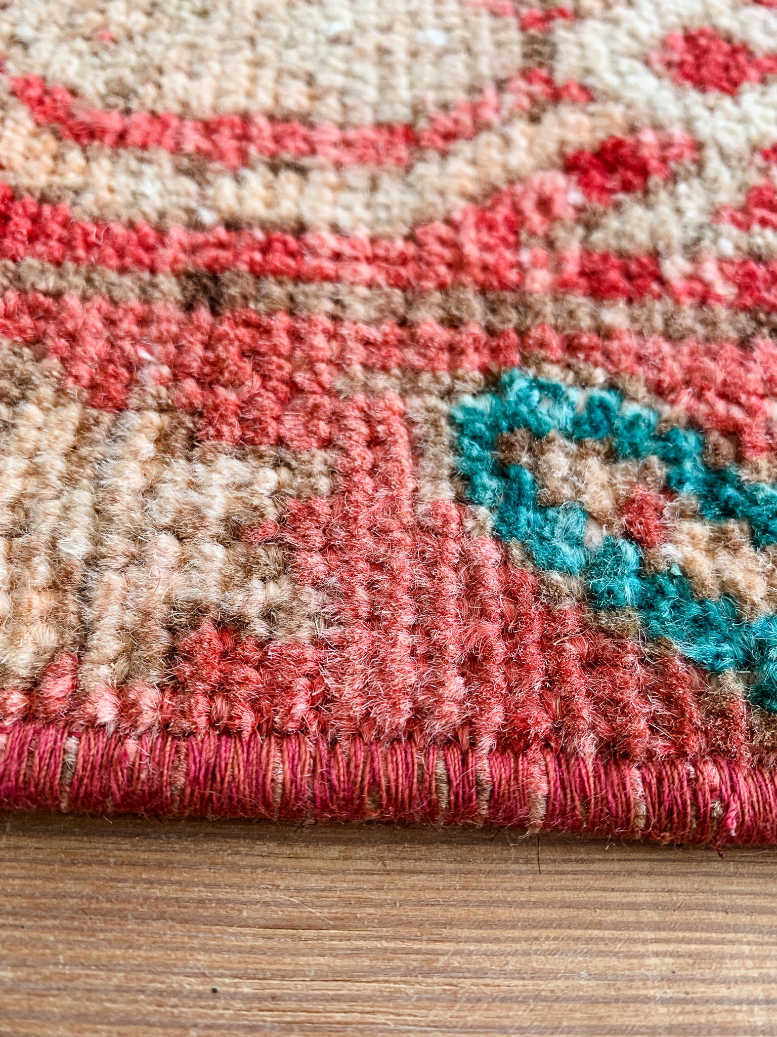 All rugs have been thoroughly cleaned; age-related wear and patina are considered normal in these unique, hand woven vintage rugs. All pieces have been photographed with moderate natural light. In some cases, photos are edited to depict the most true to life colors. Colors may vary depending on your phone or screen settings. Some items may not be perfectly straight or rectangle. We consider these characteristics part of what makes them truly one-of-a-kind.