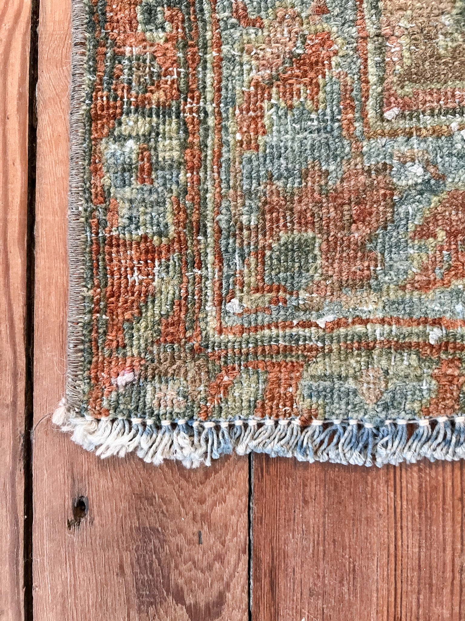 All rugs have been thoroughly cleaned; age-related wear and patina are considered normal in these unique, hand-woven vintage rugs. All pieces have been photographed with moderate natural light. In some cases, photos are edited to depict the most true-to-life colors. Colors may vary depending on your phone or screen settings. Some items may not be perfectly straight or rectangle. We consider these characteristics part of what makes them truly one-of-a-kind.
