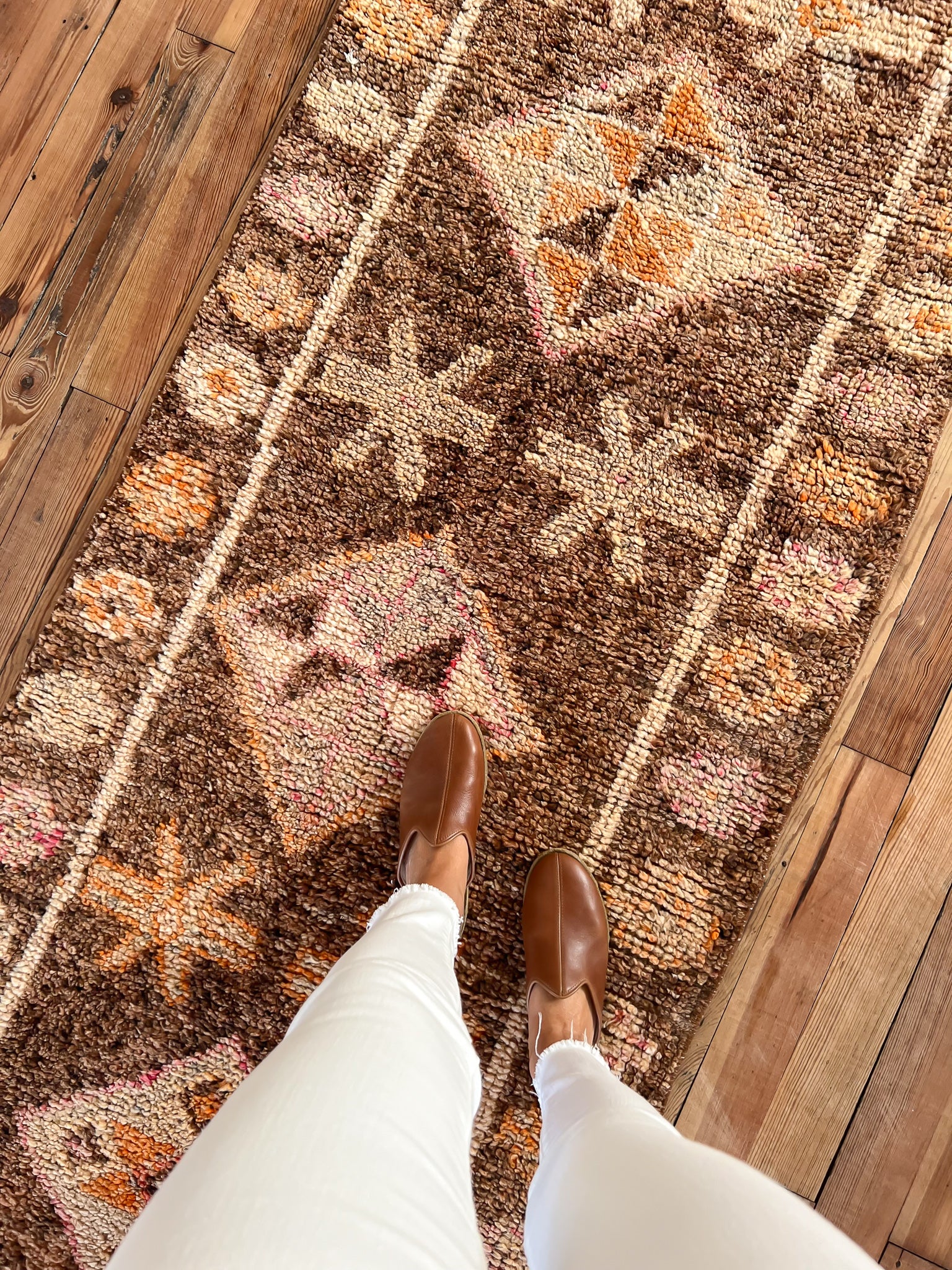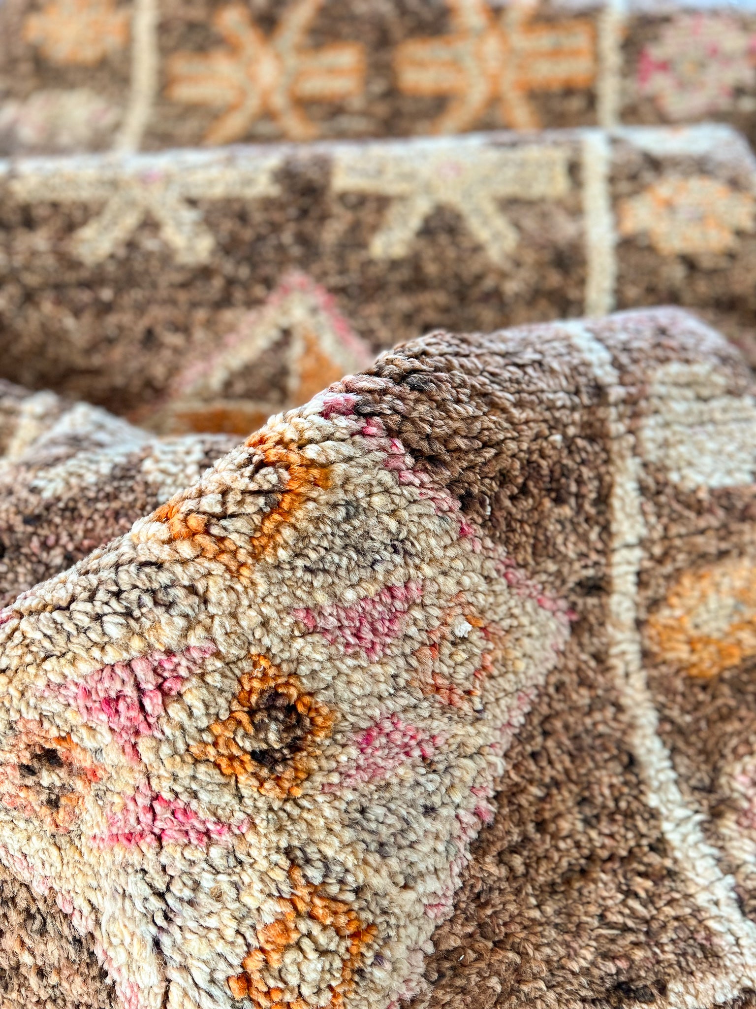 All rugs have been thoroughly cleaned; age-related wear and patina are considered normal in these unique, hand-woven vintage rugs. All pieces have been photographed with moderate natural light. In some cases, photos are edited to depict the most true-to-life colors. Colors may vary depending on your phone or screen settings. Some items may not be perfectly straight or rectangle. We consider these characteristics part of what makes them truly one-of-a-kind.