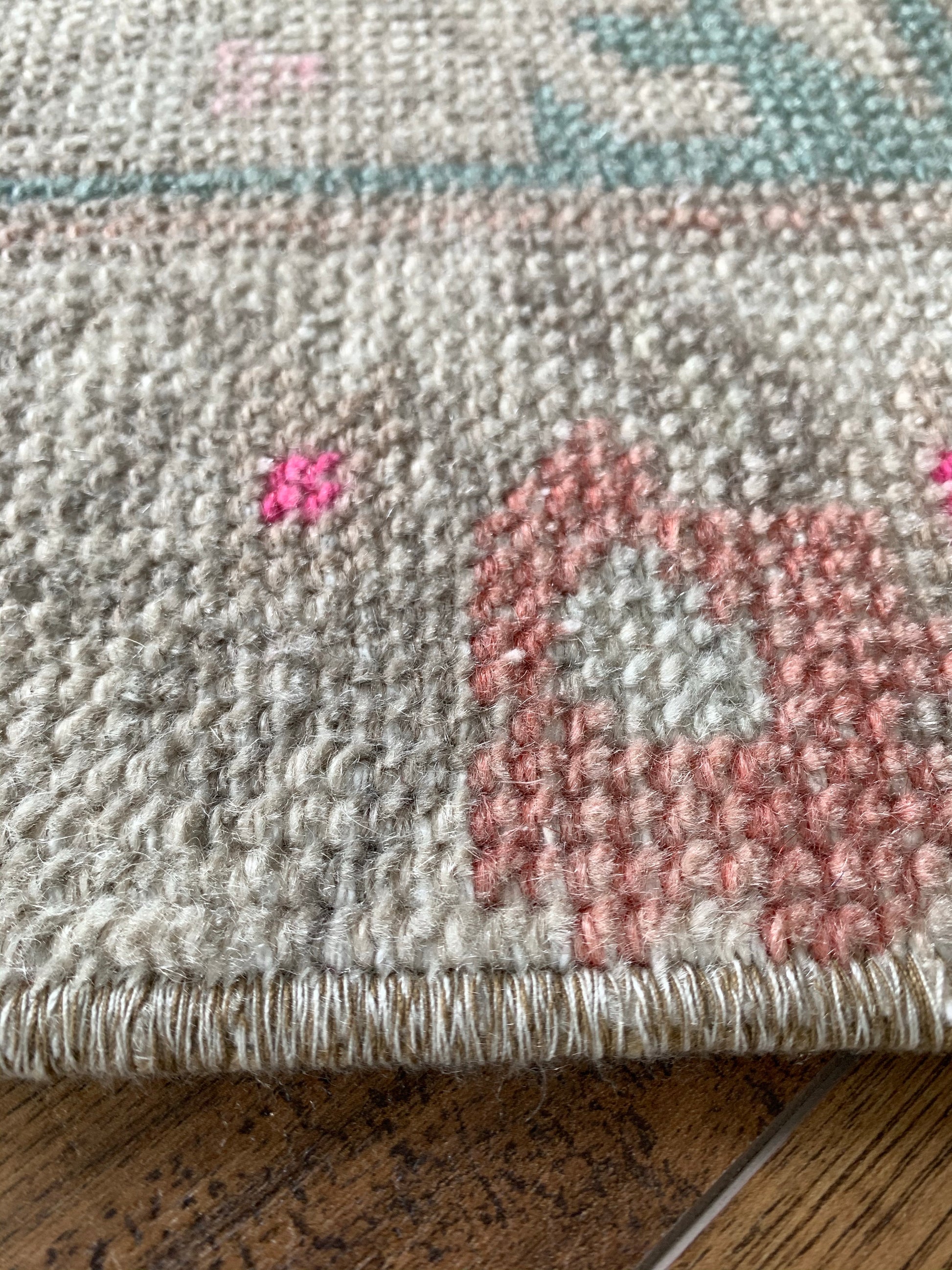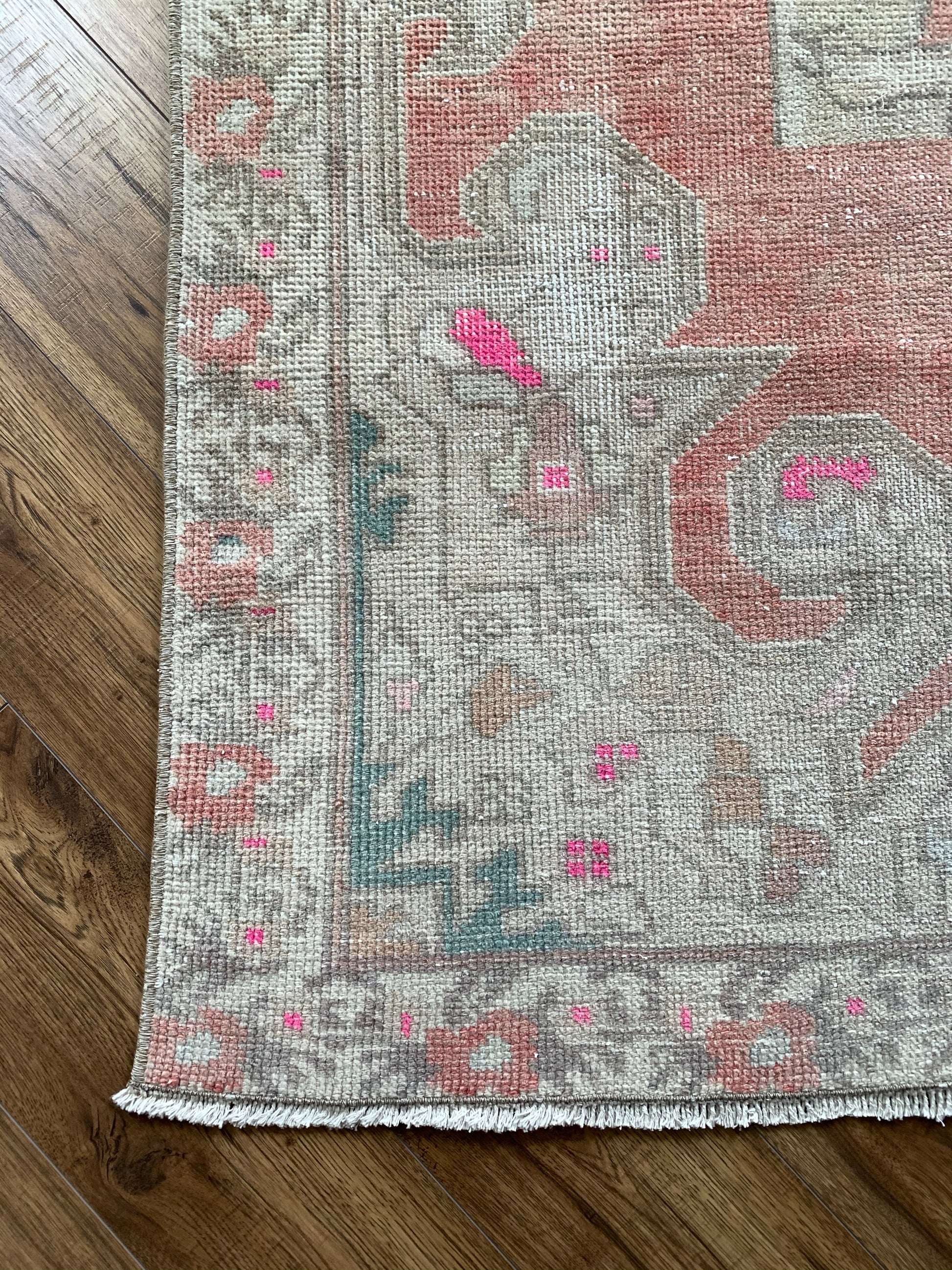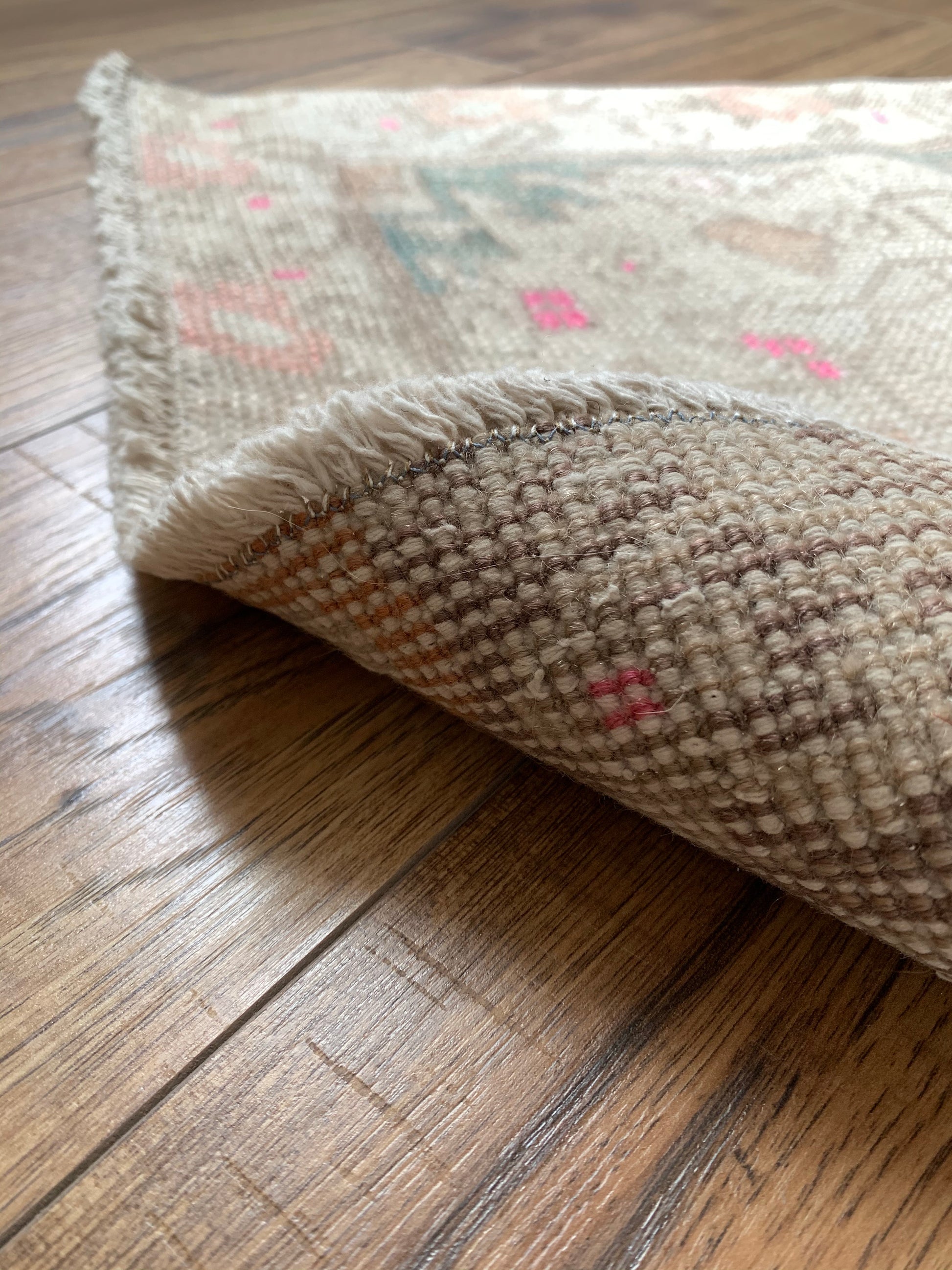 All rugs have been thoroughly cleaned; age-related wear and patina are considered normal in these unique, hand woven vintage rugs. All pieces have been photographed with moderate natural light. Colors may vary depending on your phone or screen settings. Some items may not be perfectly straight or rectangle. We consider these characteristics part of what makes them truly one-of-a-kind.