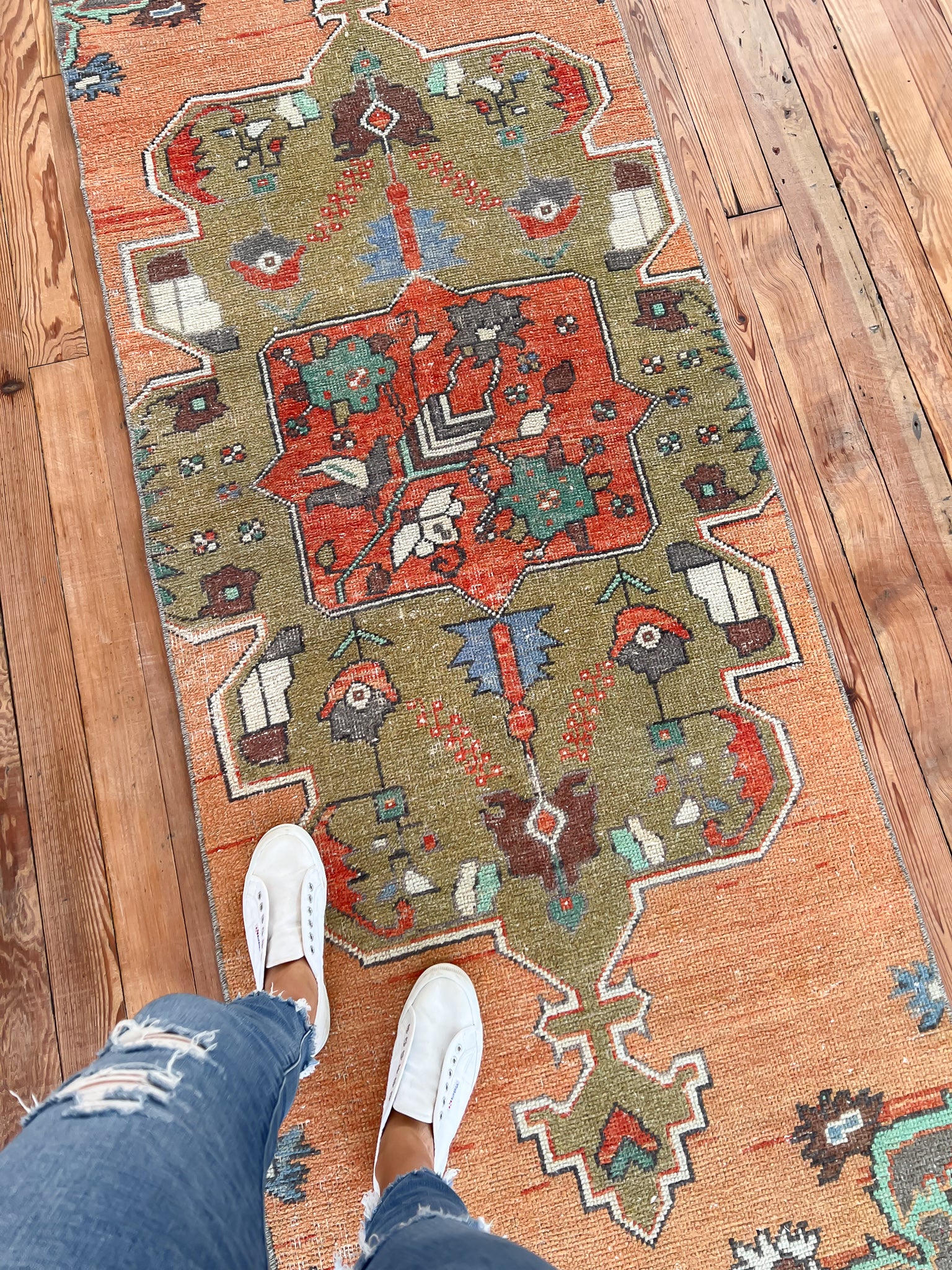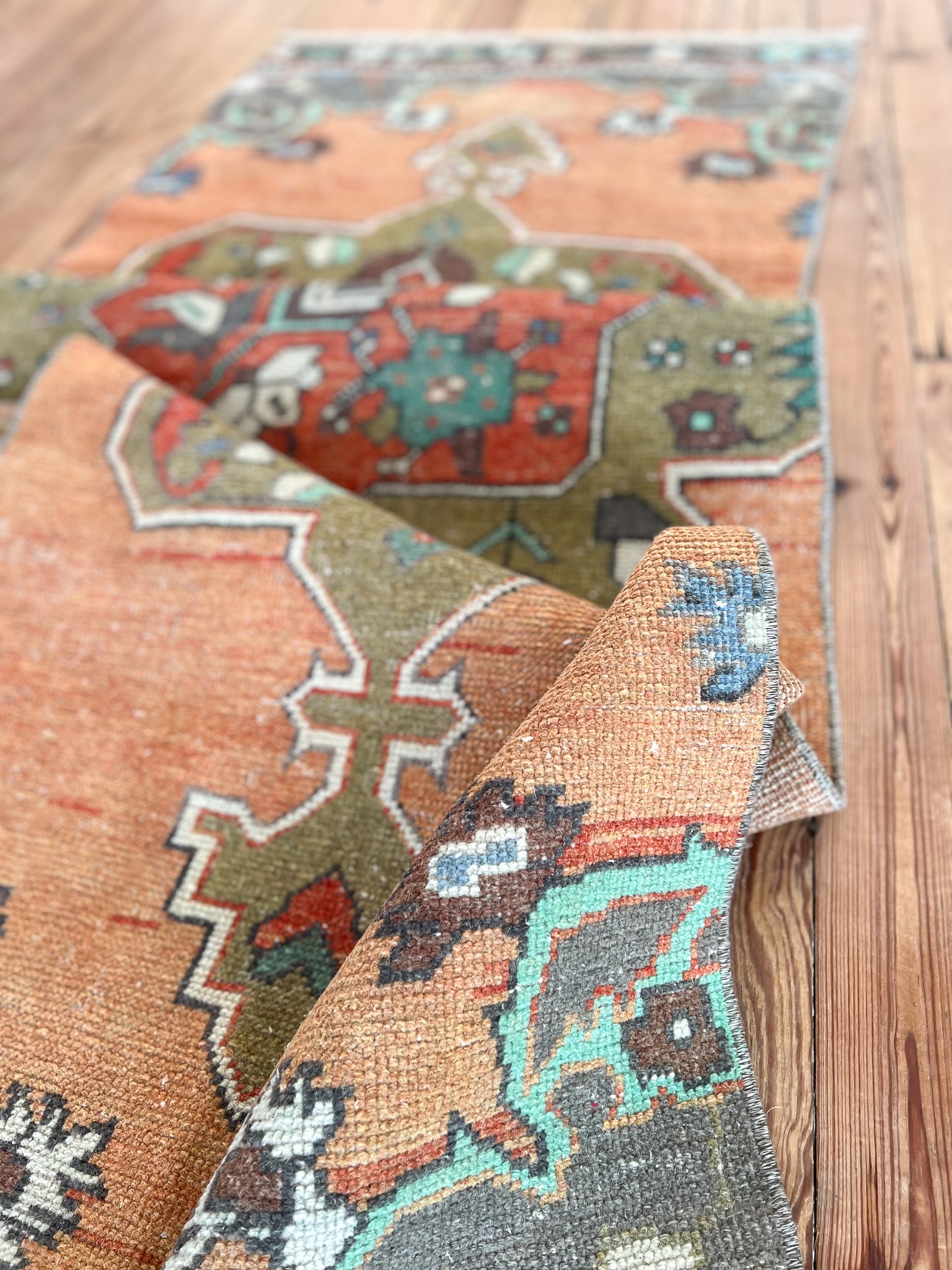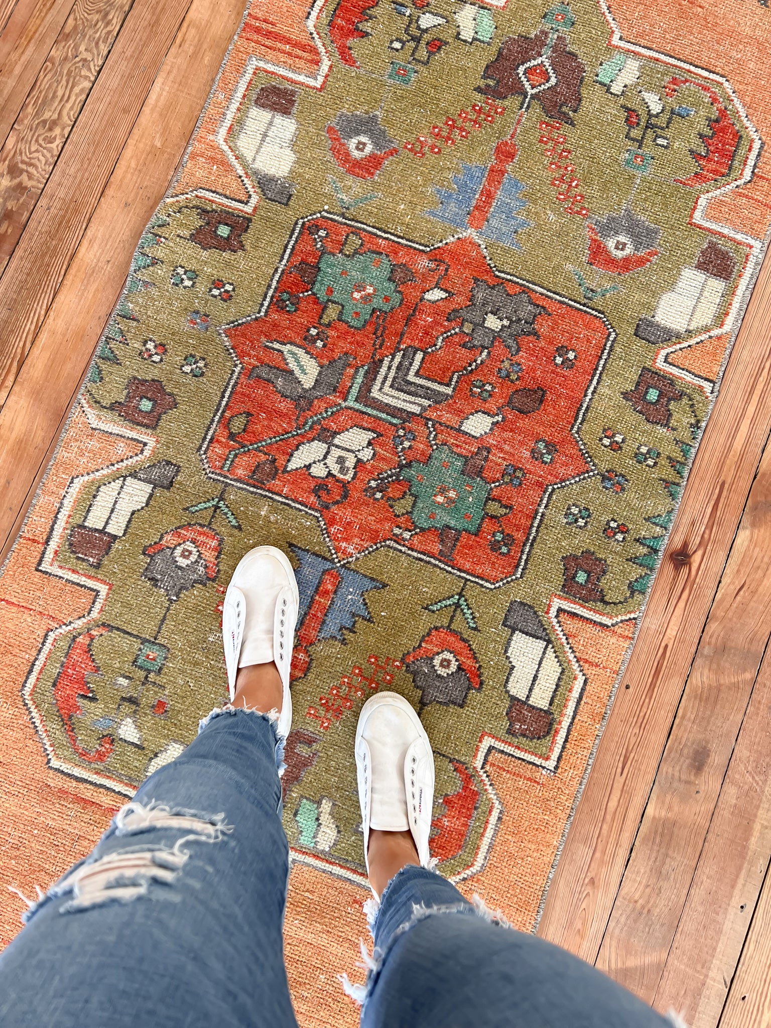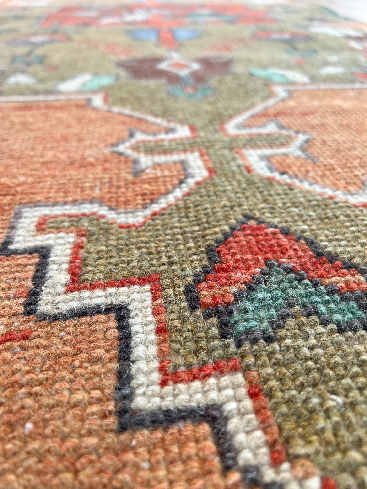All rugs have been thoroughly cleaned; age-related wear and patina are considered normal in these unique, hand-woven vintage rugs. All pieces have been photographed with moderate natural light. In some cases, photos are edited to depict the most true-to-life colors. Colors may vary depending on your phone or screen settings. Some items may not be perfectly straight or rectangle. We consider these characteristics part of what makes them truly one-of-a-kind.