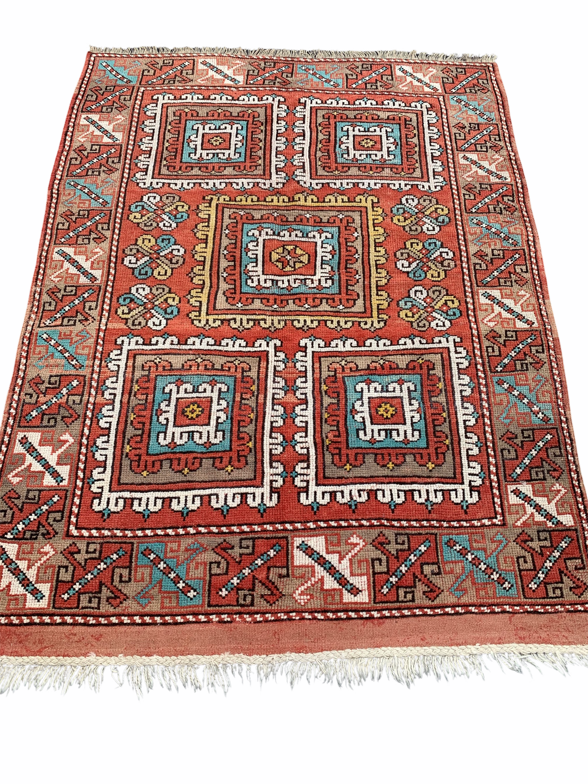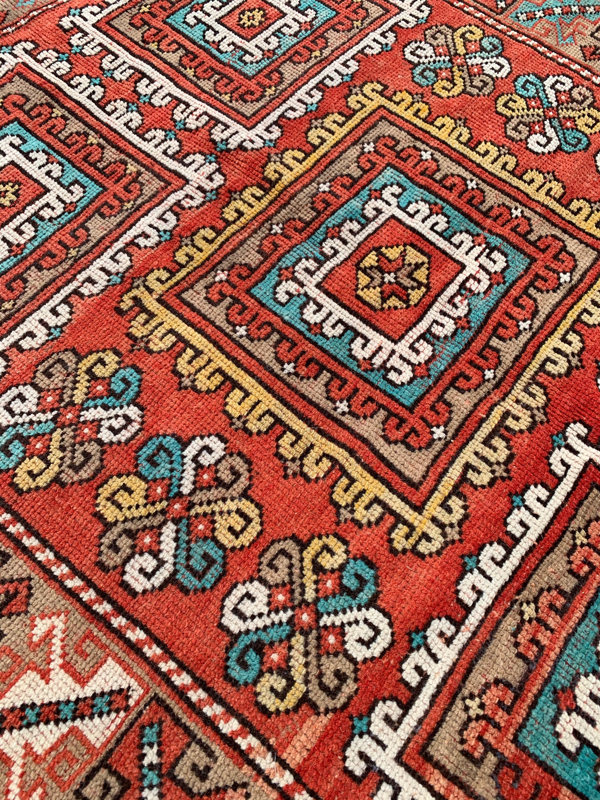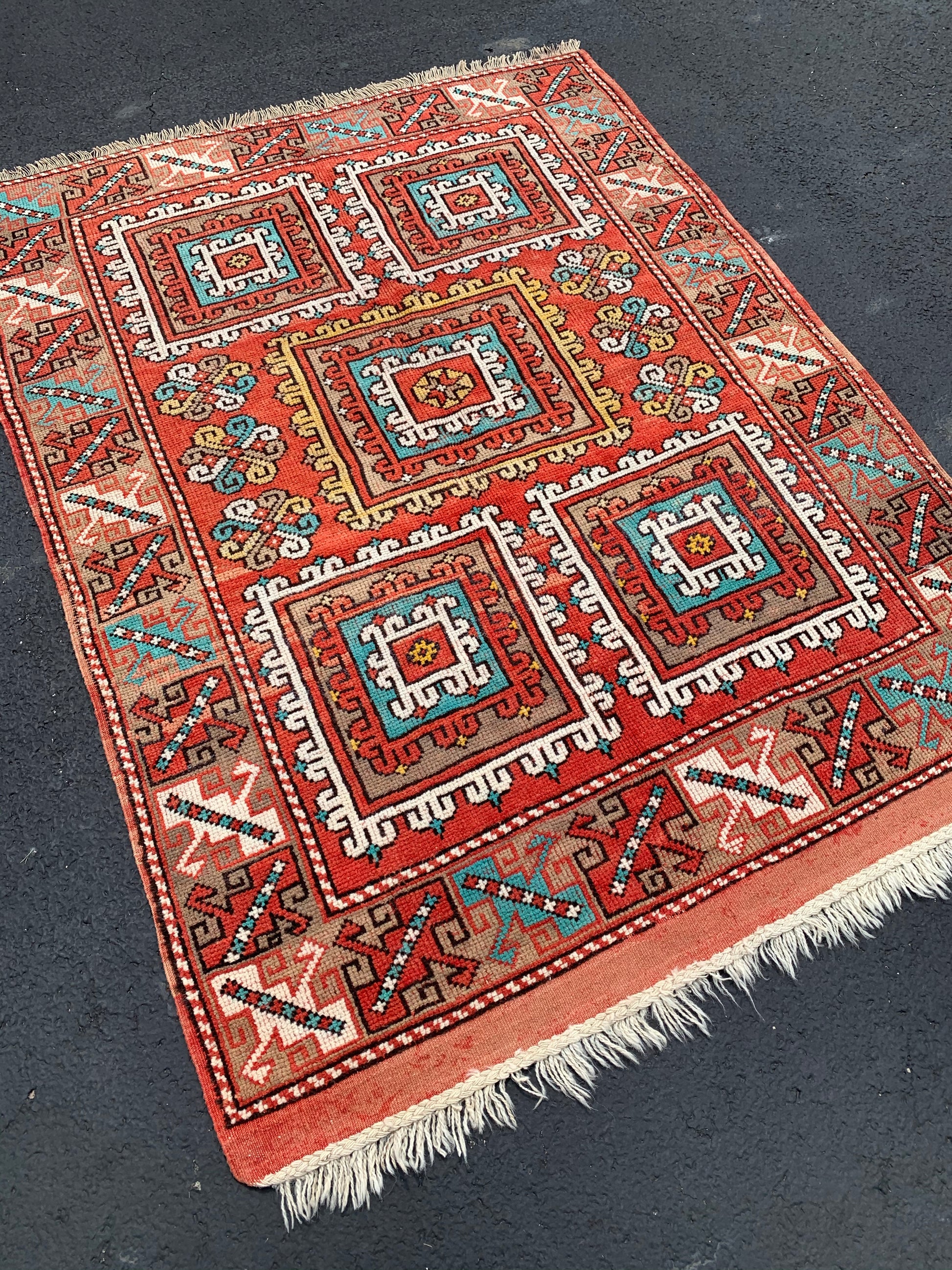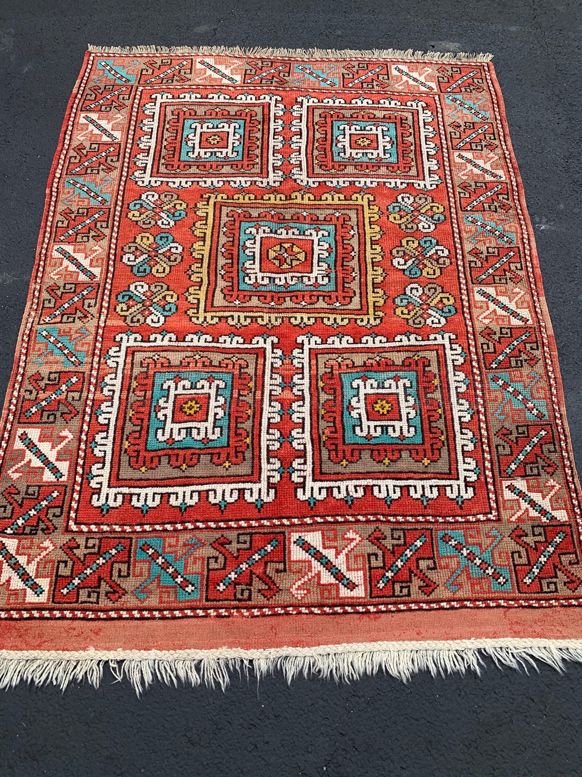 All rugs have been thoroughly cleaned; age-related wear and patina are considered normal in these unique, hand woven vintage rugs. All pieces have been photographed with moderate natural light. Colors may vary depending on your phone or screen settings. Some items may not be perfectly straight or rectangle. We consider these characteristics part of what makes them truly one-of-a-kind.