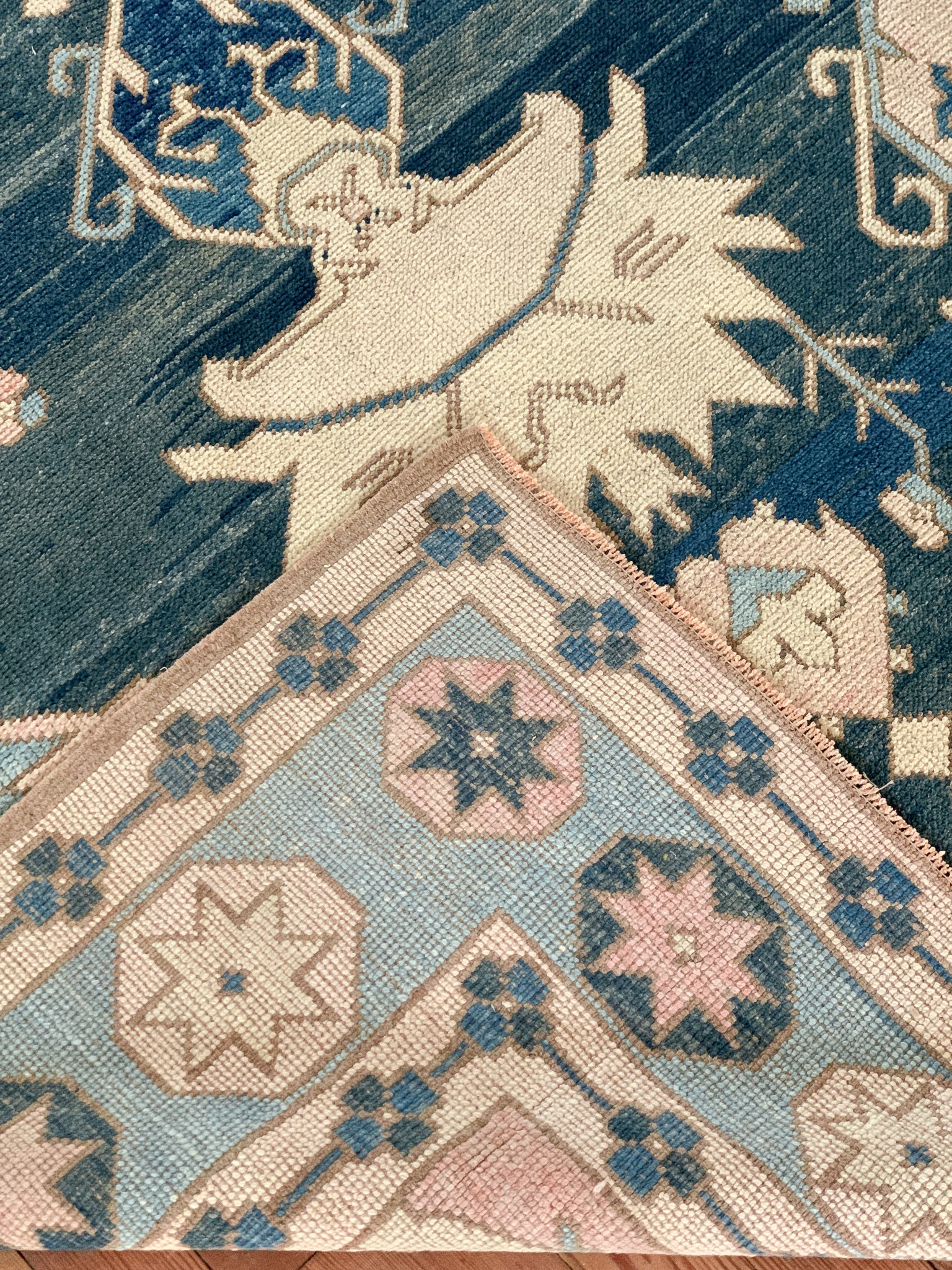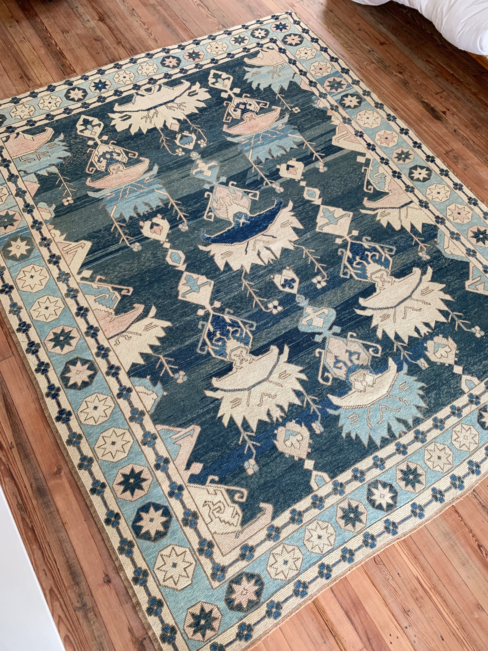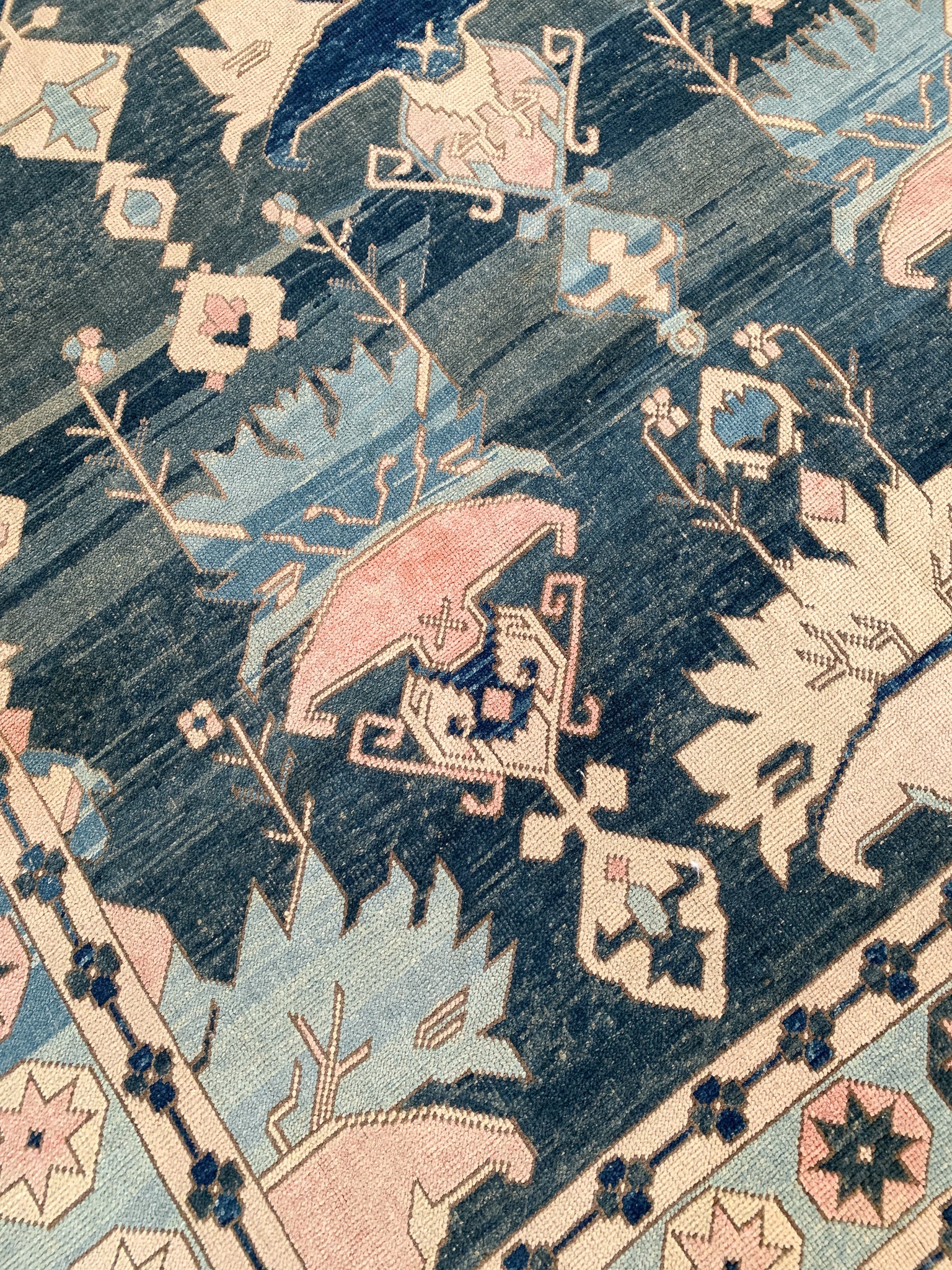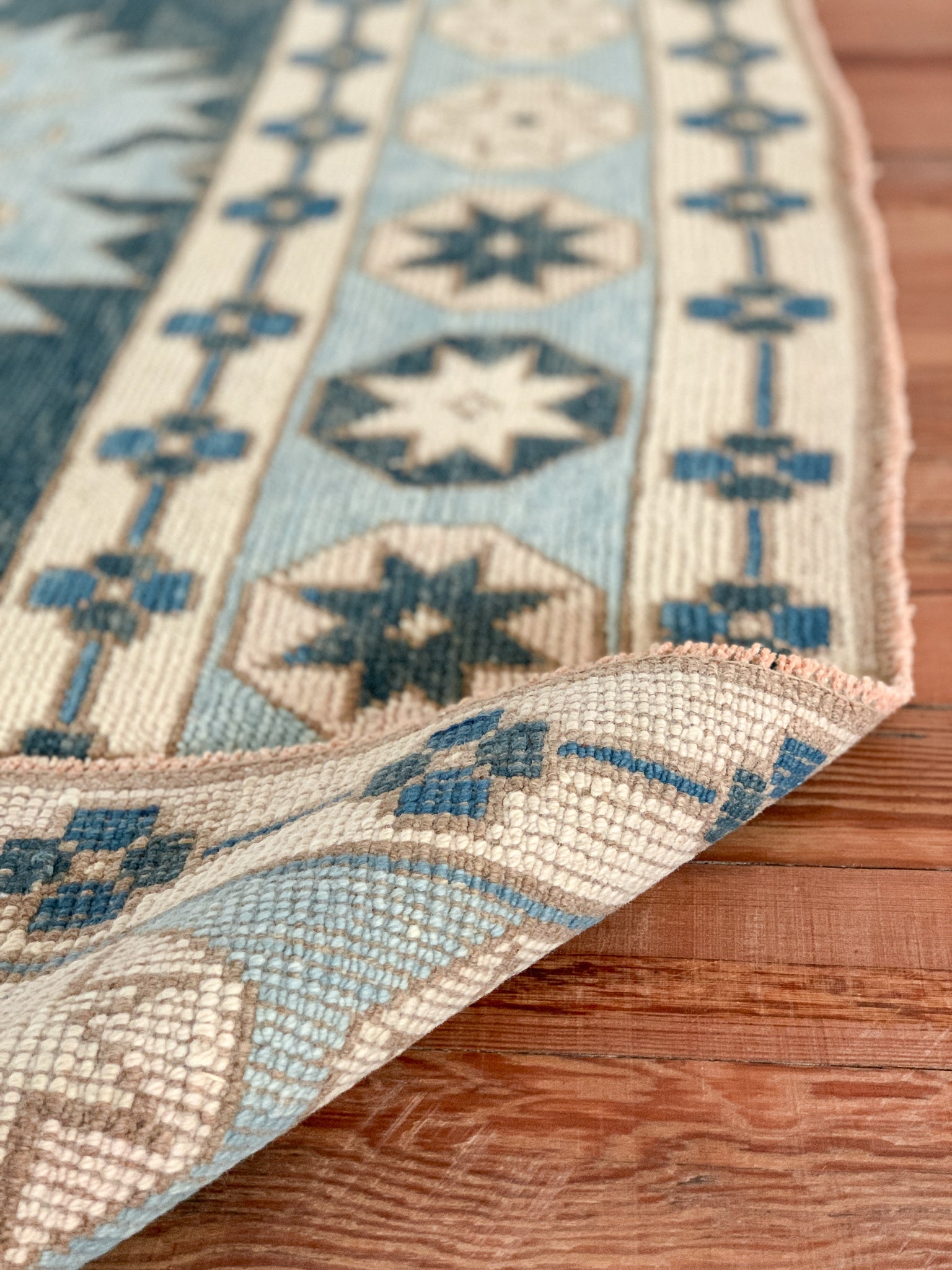 All rugs have been thoroughly cleaned; age-related wear and patina are considered normal in these unique, hand-woven vintage rugs. All pieces have been photographed with moderate natural light. In some cases, photos are edited to depict the most true-to-life colors. Colors may vary depending on your phone or screen settings. Some items may not be perfectly straight or rectangle. We consider these characteristics part of what makes them truly one-of-a-kind.